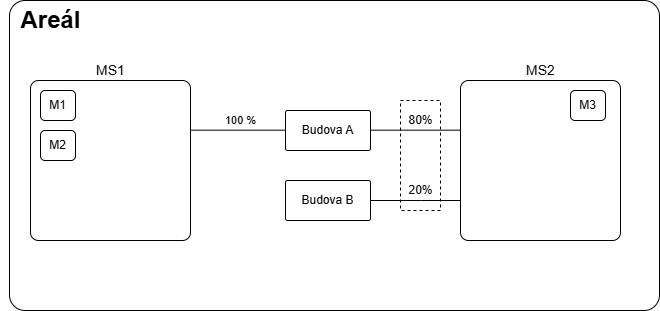 Spotřeby jednotlivých budov jsou pak dány součtem všech procentních podílů z míst spotřeb.